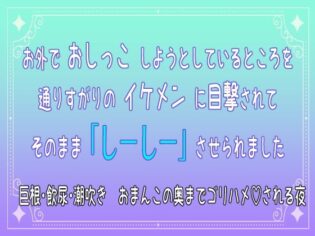 クンニ お外でおしっこしようとしているところを通りすがりのイケメンに目撃されてそのまま「しーしー」させられました 巨根・飲尿・潮吹き おまんこの奥までゴリハメされる夜【TL同人】d_733063