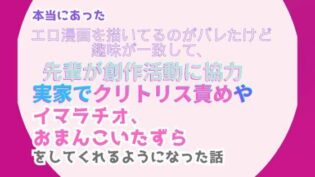 アクメ 本当にあった、エロ漫画を描いてるのがバレたけど趣味が一致して、先輩が創作活動に協力。実家でクリトリス責めやイマラチオ、おまんこいたずらをしてくれるようになった話【TL同人】d_506329
